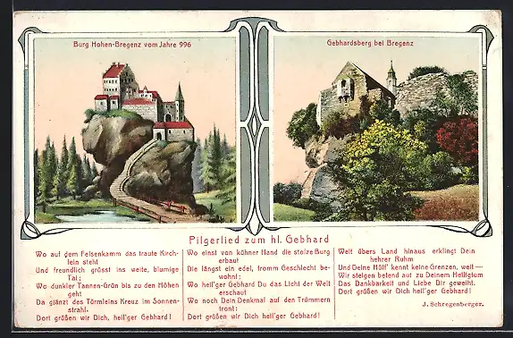 AK Bregenz, Gebhardsberg mit Kirche, Burg Hohen-Bregenz, Pilgerlied in Textform