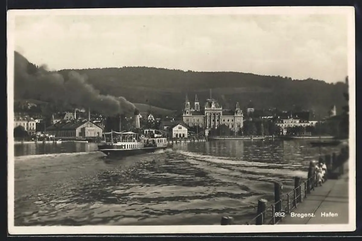 AK Bregenz, Hafen mit Dampfer