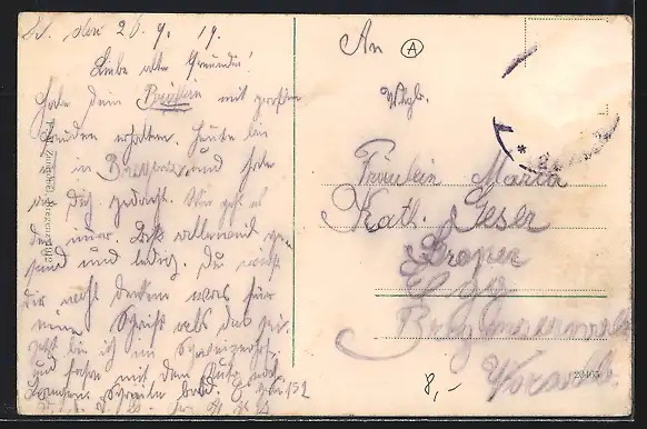 alte Ansichtskarte, gelaufen 1919, Briefmarke entfernt, guter Zustand