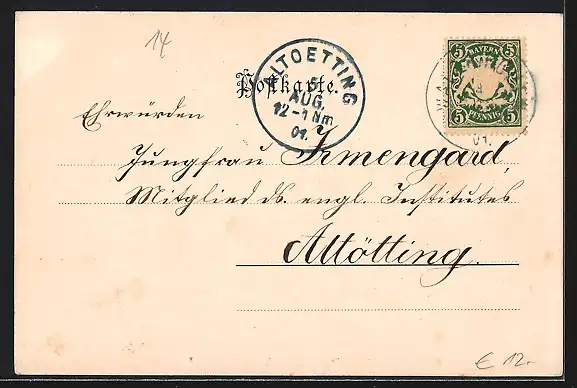 alte Ansichtskarte, gelaufen 1901, Stempelspur, guter Zustand