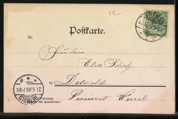 alte Ansichtskarte, gelaufen 1899, Stempelspur, guter Zustand