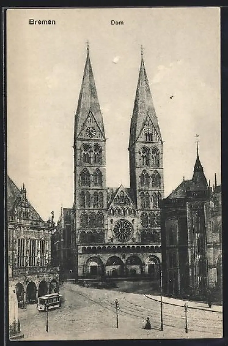 AK Bremen, Dompartie mit Strassenbahn