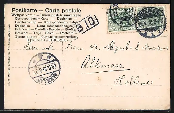 alte Ansichtskarte, gelaufen 1910, Stempelspur, guter Zustand