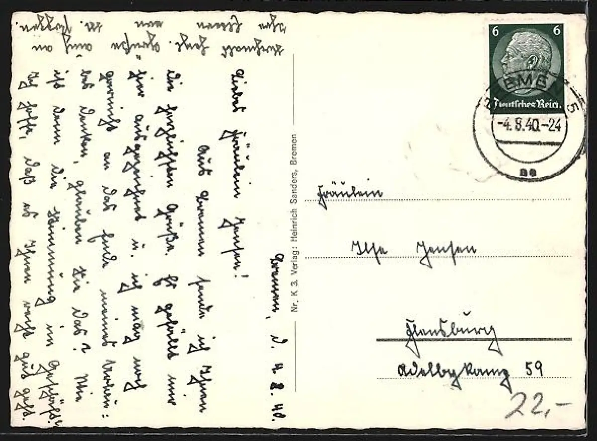 alte Ansichtskarte, gelaufen 1940, guter Zustand
