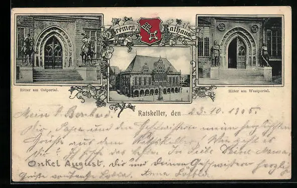 AK Bremen, Rathaus, Ritter am Westportal