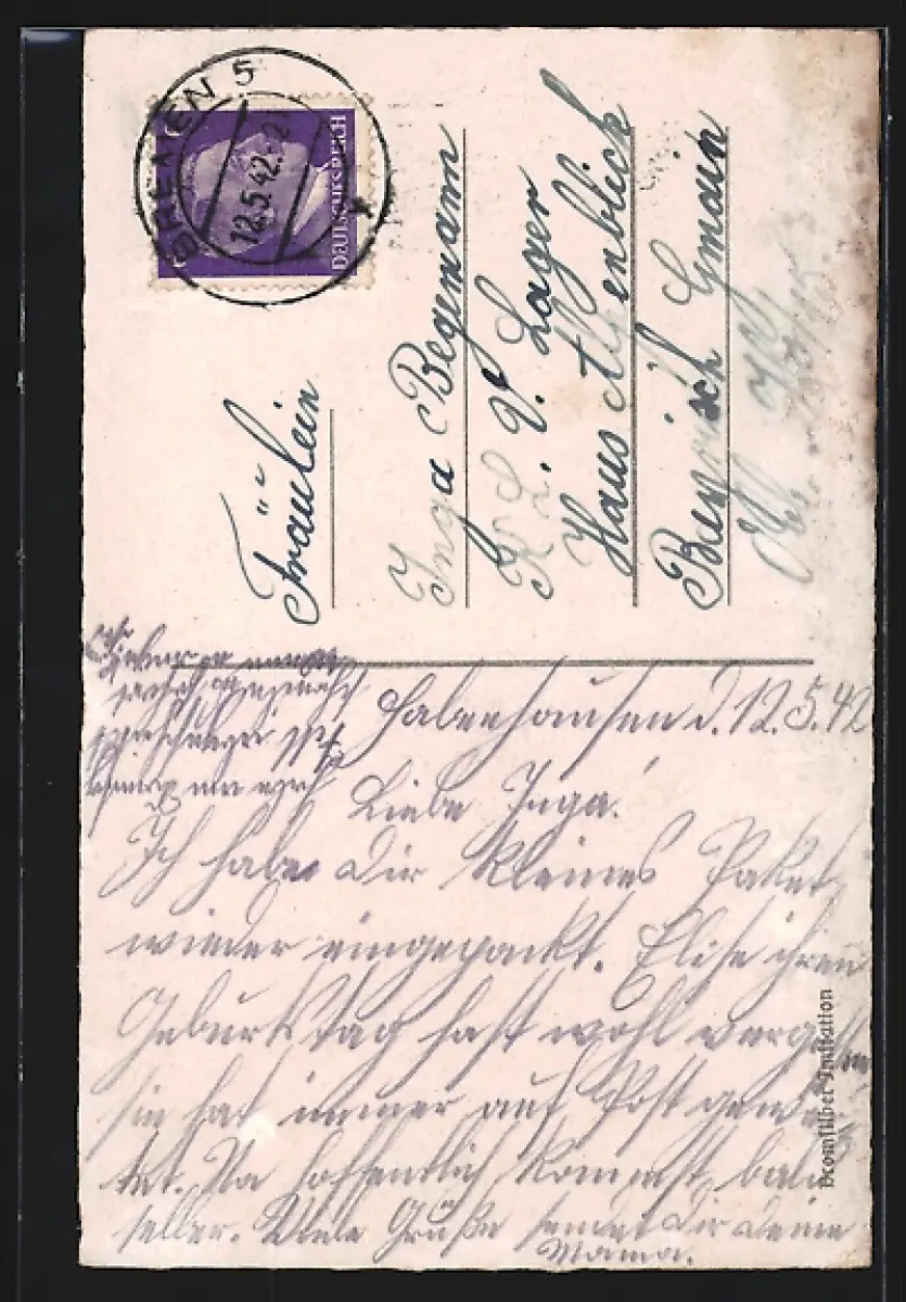 alte Ansichtskarte, gelaufen 1942, Eckknick unten links, Klebespur unten mittig