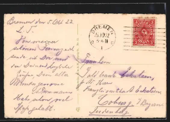 alte Ansichtskarte, gelaufen 1922, guter Zustand