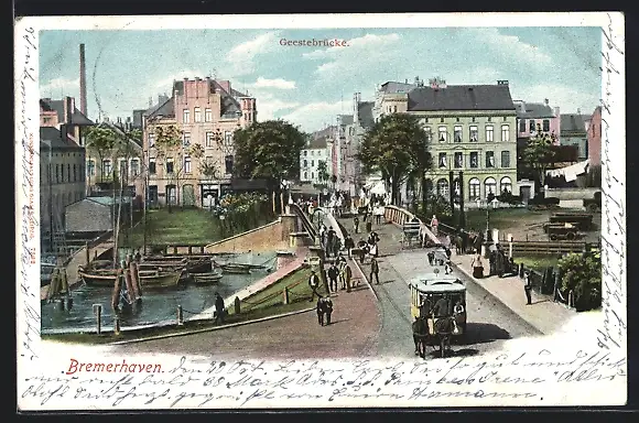 AK Bremerhaven, Pferdebahn auf der Geesterbrücke