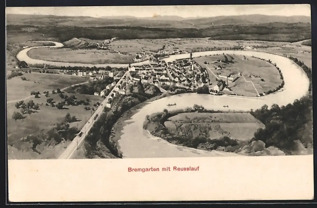 AK Bremgarten /AG, Totalansicht mit Blick auf den Reusslauf