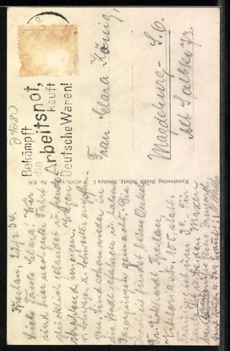 alte Ansichtskarte, gelaufen 1934, Briefmarke entfernt, guter Zustand
