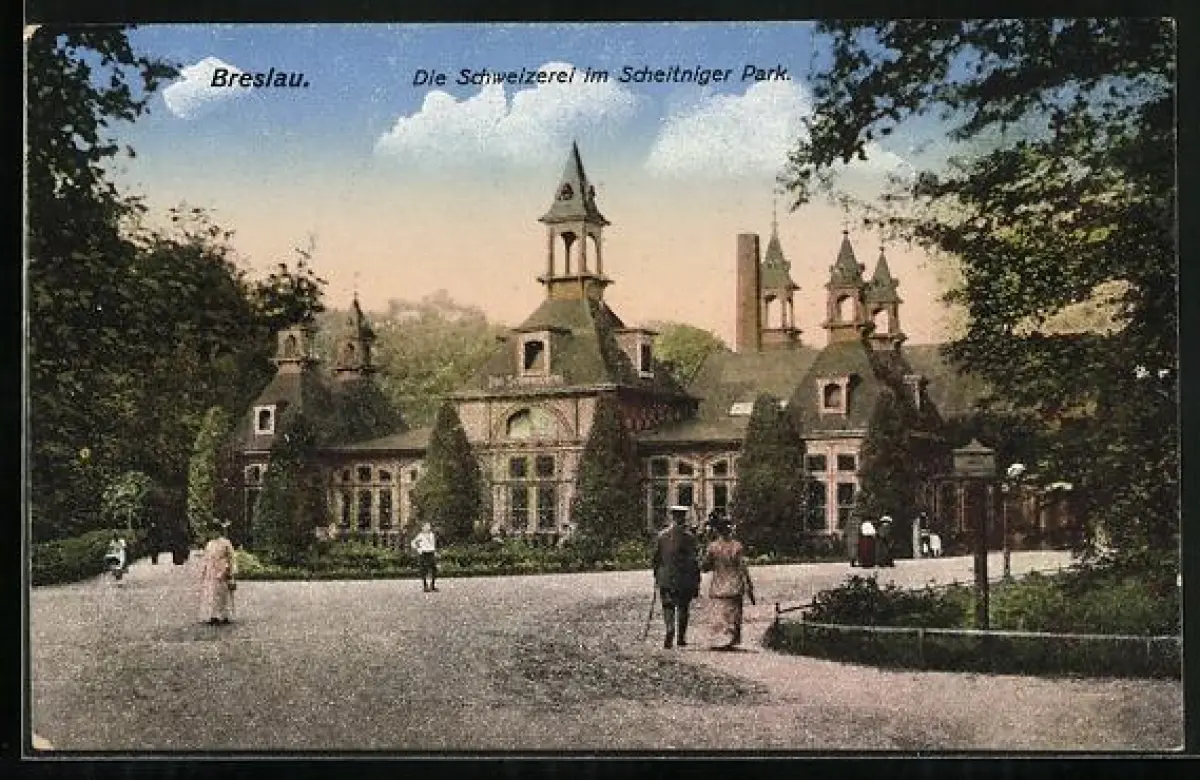 AK Breslau, Cafe Schweizerei im Scheitniger Park