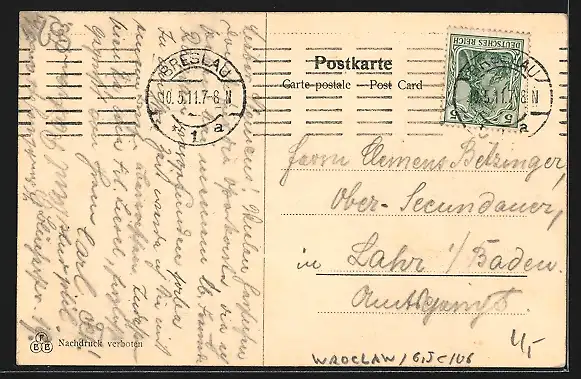 alte Ansichtskarte, gelaufen 1911, guter Zustand