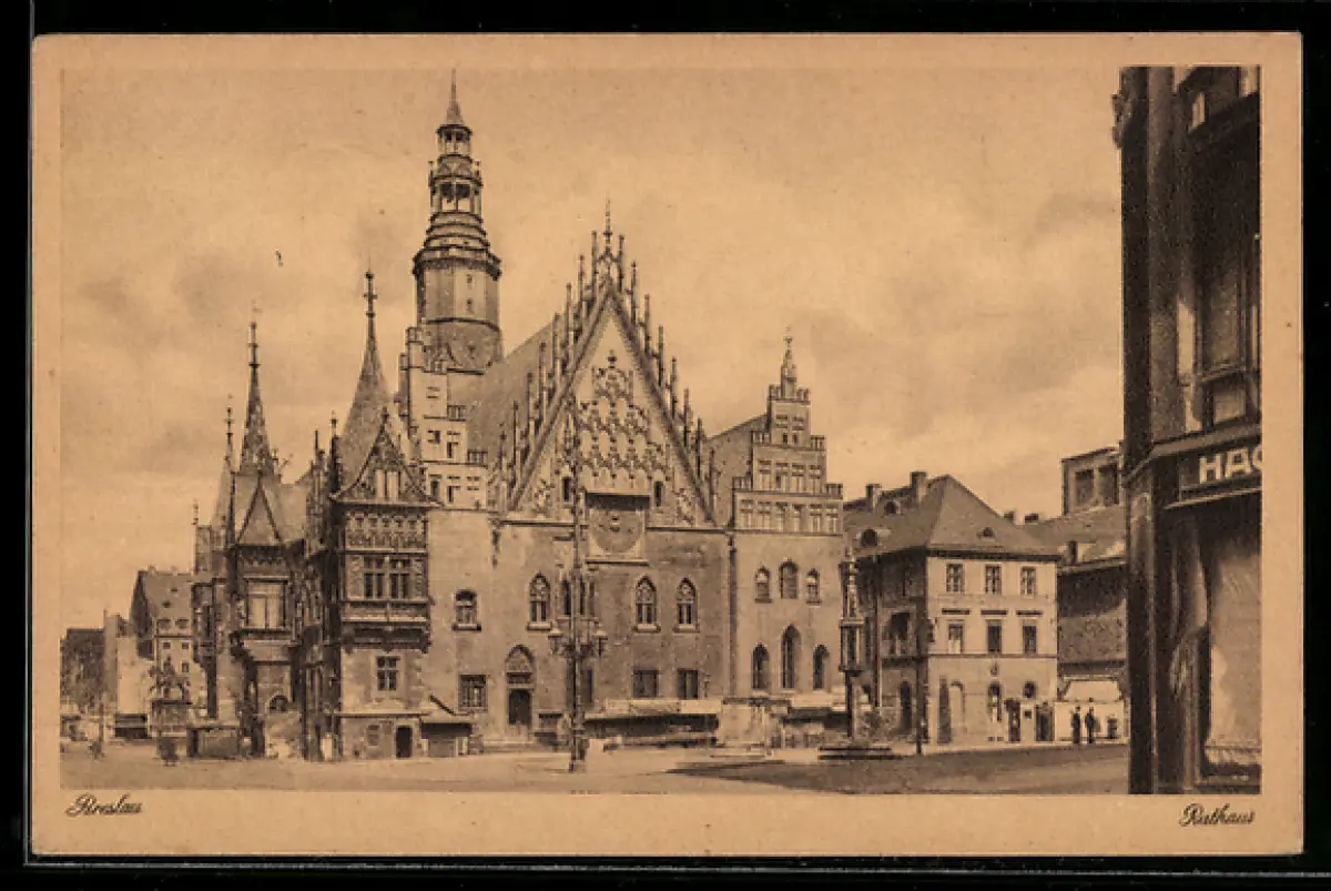 AK Breslau, Rathaus mit Denkmal