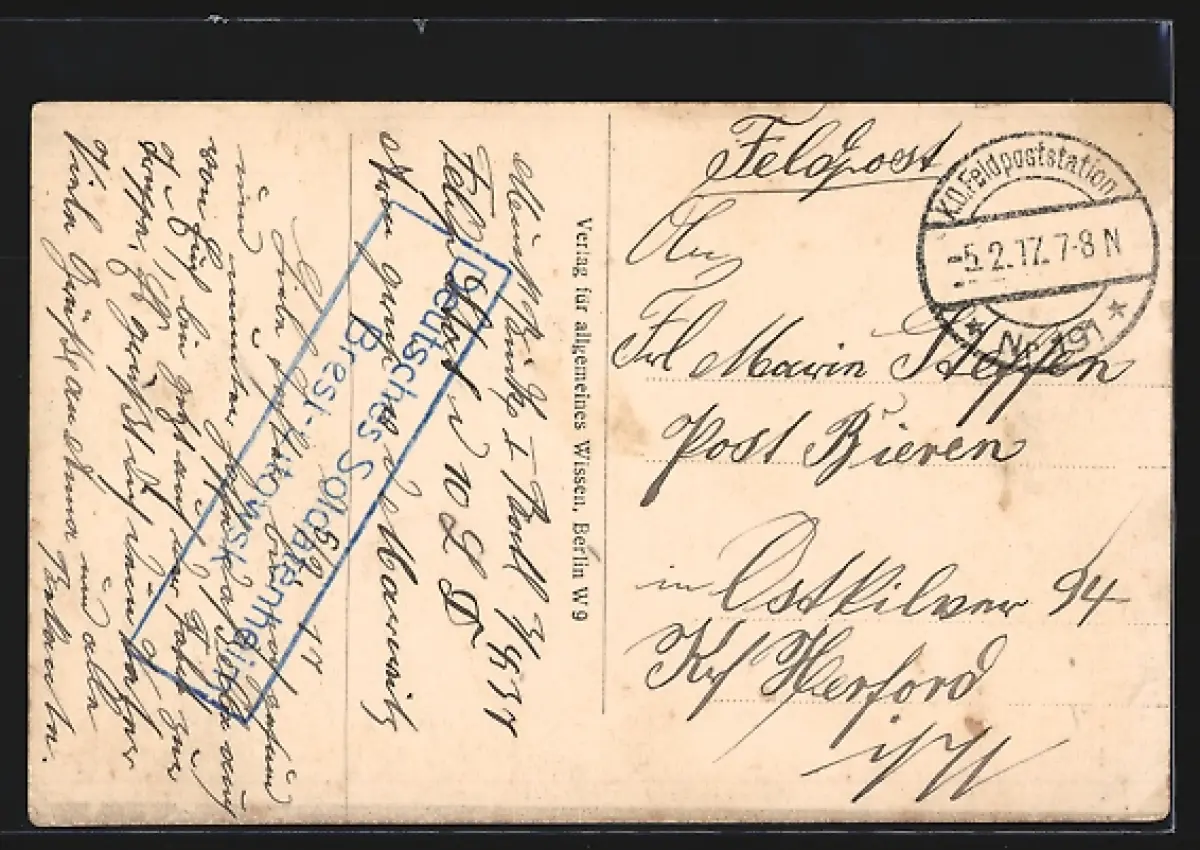 alte Ansichtskarte, gelaufen 1917, Eckknick re. unten, guter Zustand