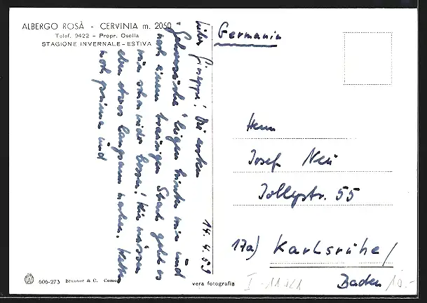 AK Breuil-Cervinia, Albergo Rosà, Propr. Osella