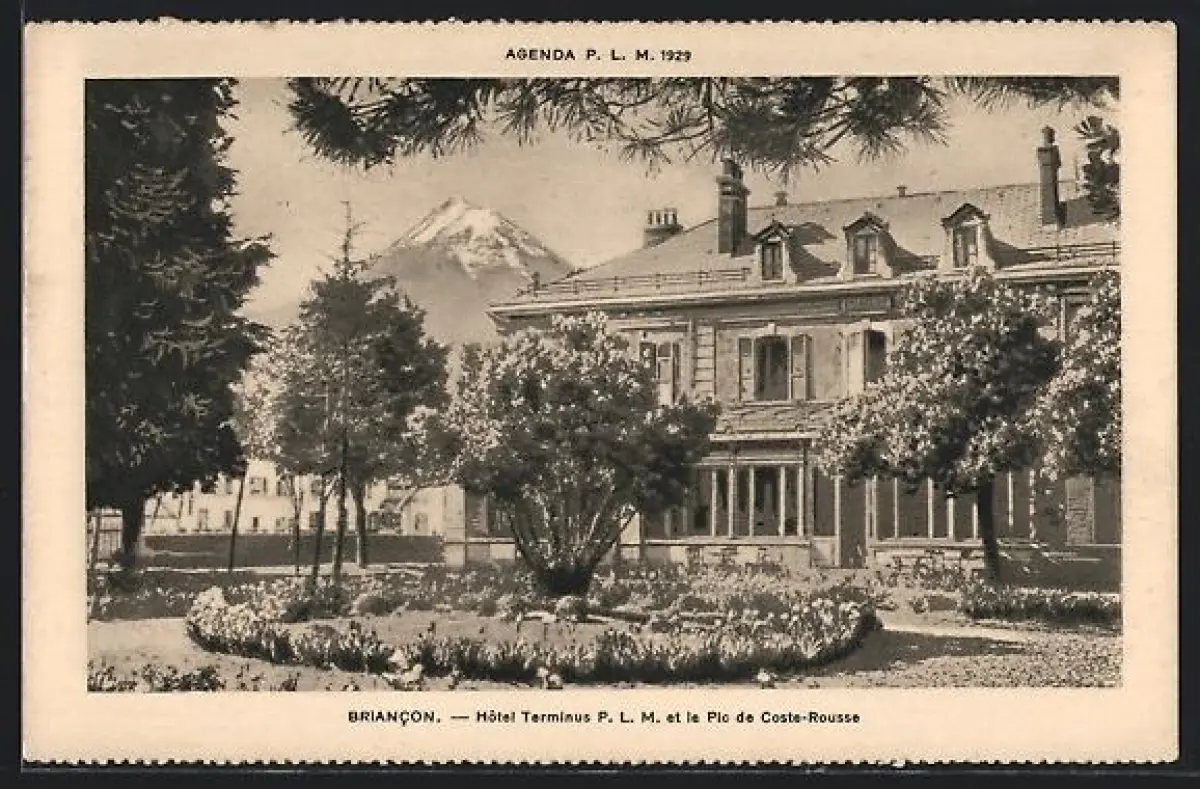 AK Briancon, Hôtel Terminus P.L.M. et le Pic de Coste-Rousse