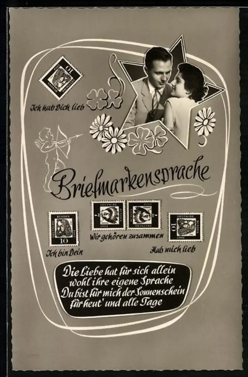 AK Briefmarkensprache, Die Liebe hat für sich allein...