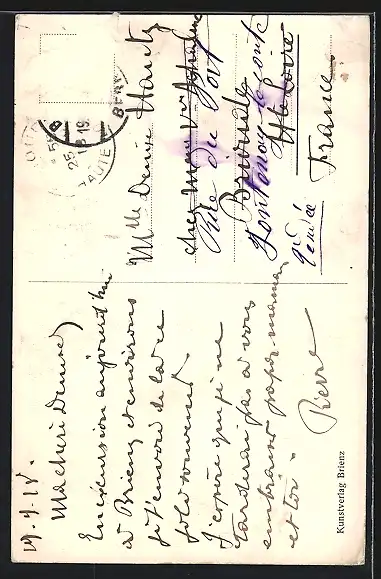 alte Ansichtskarte, gelaufen 1918, Briefmarke entfernt, rückseitig Oberflächenschaden, Eckknick li. oben, guter Zustand