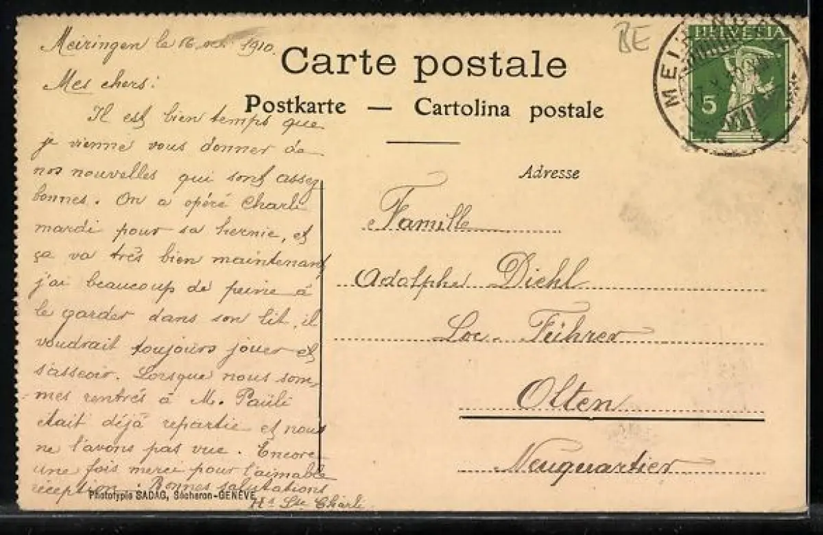 alte Ansichtskarte, gelaufen 1910, guter Zustand