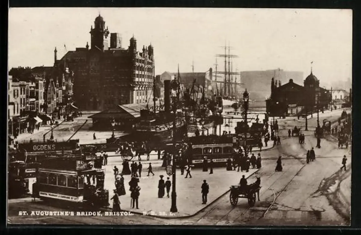 AK Bristol, St. Augustine`s Bridge, Strassenbahn
