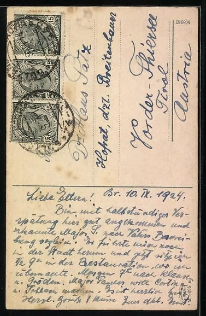 gelaufen 1924, Eckknicke re. unten u. li., guter Zustand