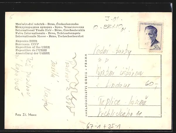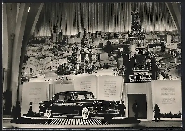 AK Brno, Internationale Messe, Ausstellung der UdSSR, Auto vor Moskau-Panorama
