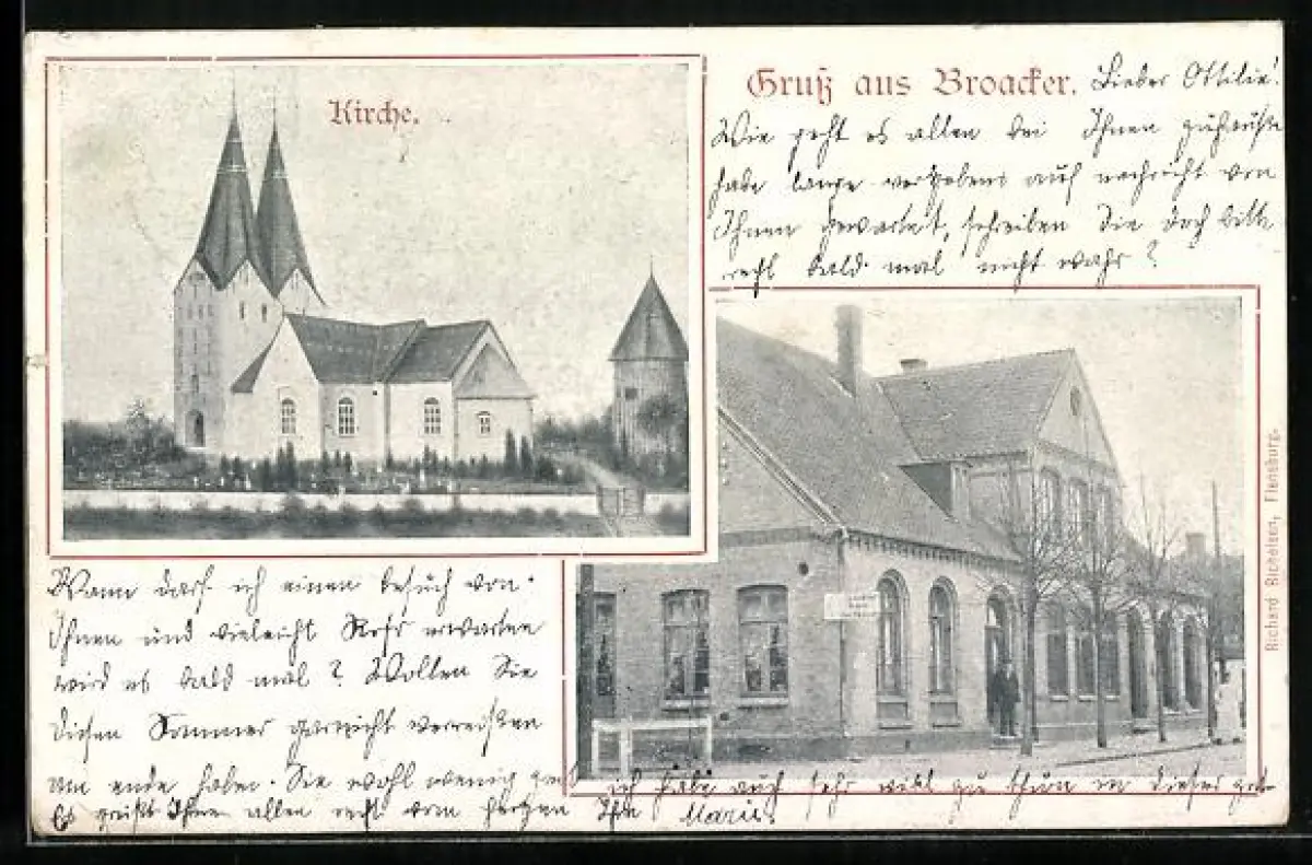 AK Broager, Kirche, Bahnhof