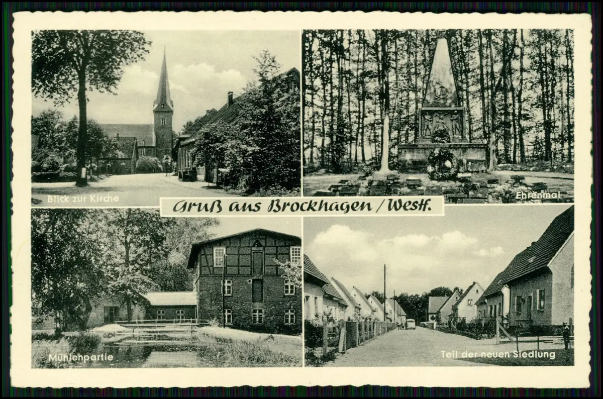 AK Brockhagen Steinhagen - Blick zur Kirche - Ehrenmal - Mühlenpartie - Siedlung