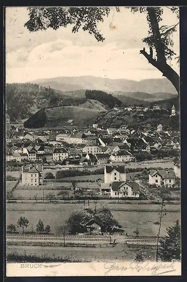 AK Bruck a. M., Blick von einer Anhöhe auf den Ort