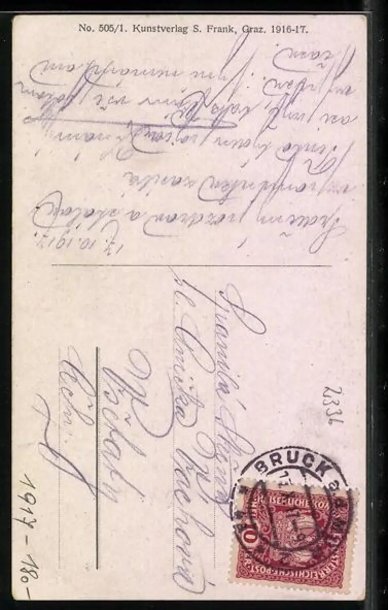 alte Ansichtskarte, gelaufen 1917, Eckknick rechts unten, guter Zustand