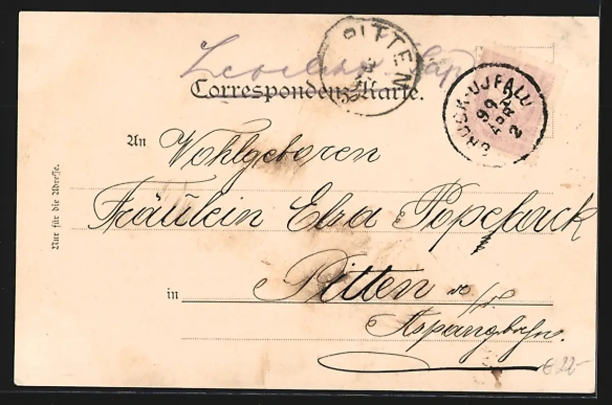 alte Ansichtskarte, gelaufen 1899, guter Zustand