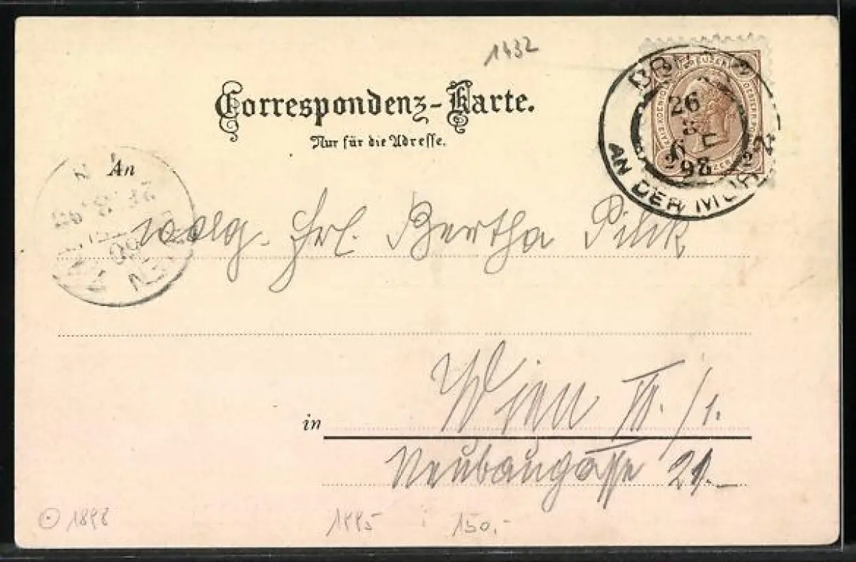 alte Ansichtskarte, gelaufen 1898, guter Zustand
