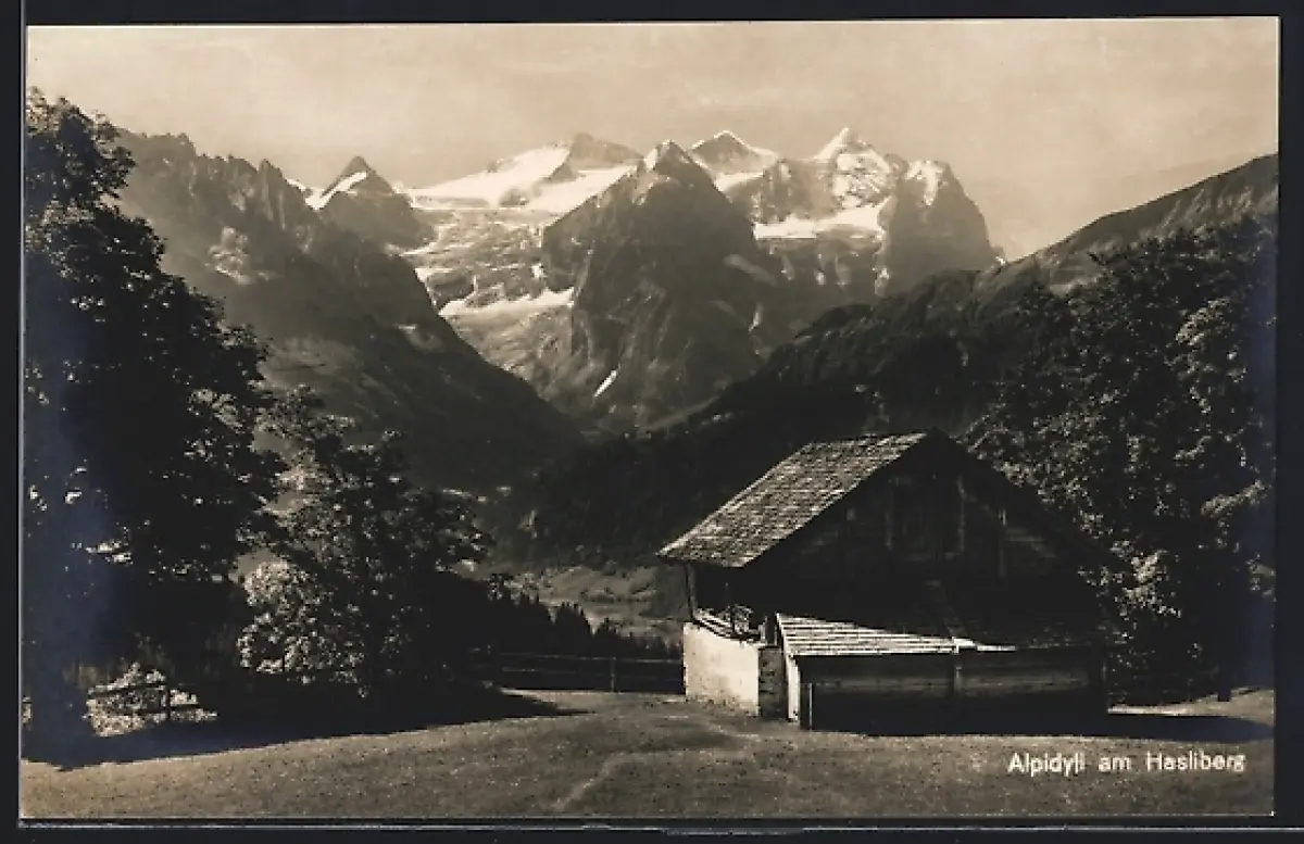 AK Brünig-Hasliberg, Alpidyll mit Berghütte