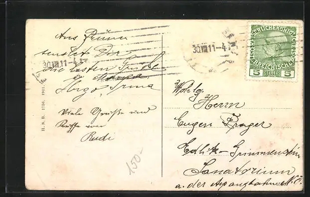 alte Ansichtskarte, gelaufen 1911, Eckknick unten rechts, guter Zustand