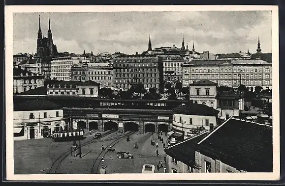 AK Brünn / Brno, Teilansicht, Strassenbahn