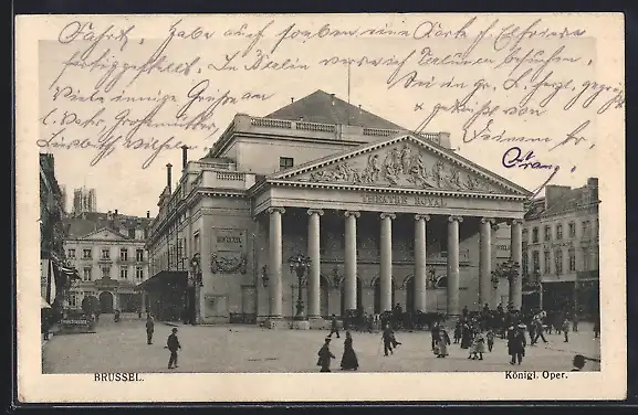 AK Brüssel, Königliche Oper mit Passanten