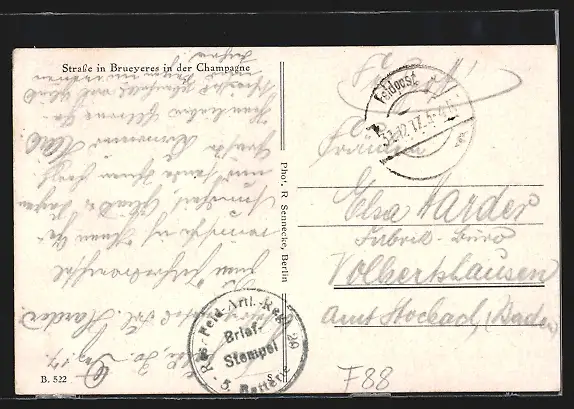 gelaufen 1917, Eckknick oben rechts, guter Zustand