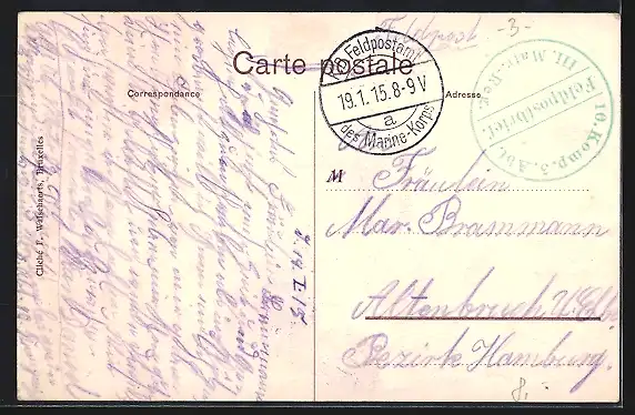 alte Ansichtskarte, gelaufen 1915, Stempelspur, guter Zustand