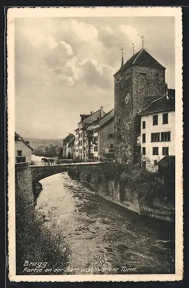 AK Brugg, Partie an der Aare u. schwarzer Turm