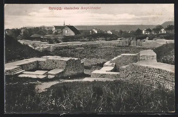 AK Brugg, Römisches Amphitheater mit Ortspanorama