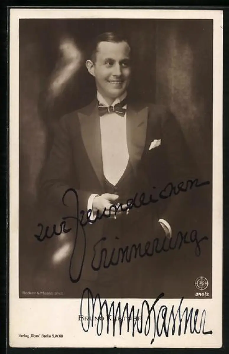 AK Bruno Kastner lächelt im Dreiteiler, Autograph