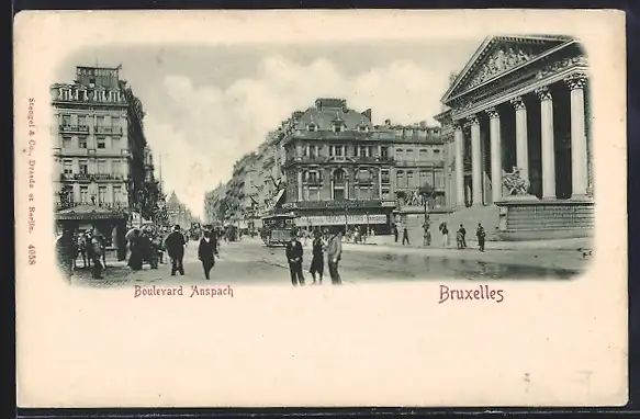 AK Bruxelles, Boulevard Anspach, Strassenbahn