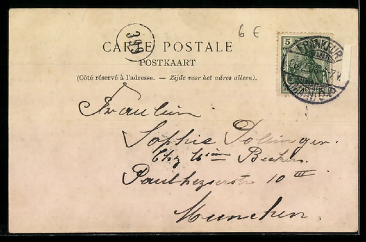 alte Ansichtskarte, gelaufen 1906, rückseitig Oberflächenschaden, guter Zustand