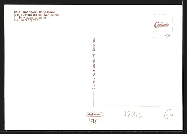 AK Buchenberg / Königsfeld, Cafe-Conditorei Rapp-Garni