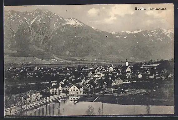 AK Buchs /SG, Totalansicht des Ortes mit Bergen
