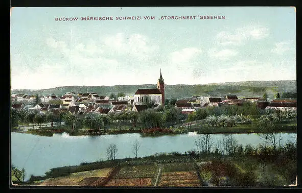 AK Buckow /Märkische Schweiz, Ortsansicht vom Storchennest gesehen