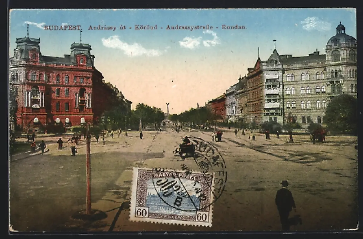 AK Budapest, Andrassystrasse, Panorama mit Rundau