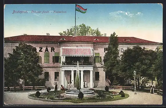 AK Budapest, Kaiserbad mit Springbrunnen
