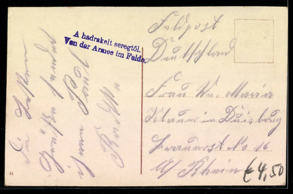 alte Ansichtskarte, gelaufen als Feldpost, Eckknick rechts oben, sonst guter Zustand