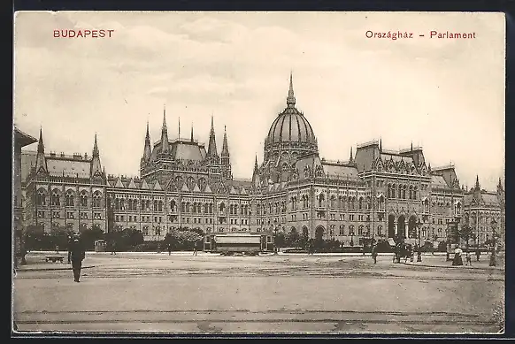 AK Budapest, Strassenbahn vor dem Parlament